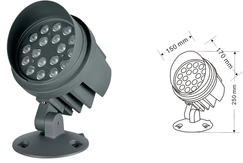 Aluminium+herdet glass Bracket Type: Justerbar IP: IP67 Alternativer for fargetemperatur: 3000K/4000K/6500K RGB/DMX512 (unntatt COB) RGBW/DMX512 (unntatt COB) Tradisjonell grå, tilpassbar for å matche fargen på bygningsfasader |